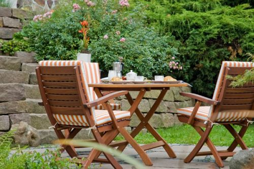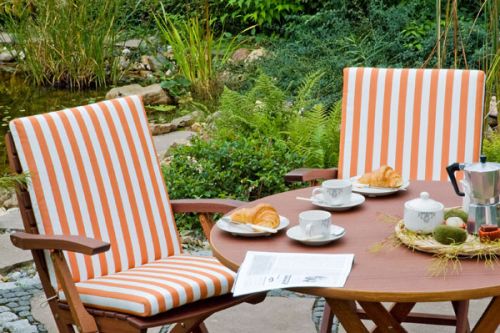 Das wetterfeste Mahagoni Holz besticht durch eine elegante